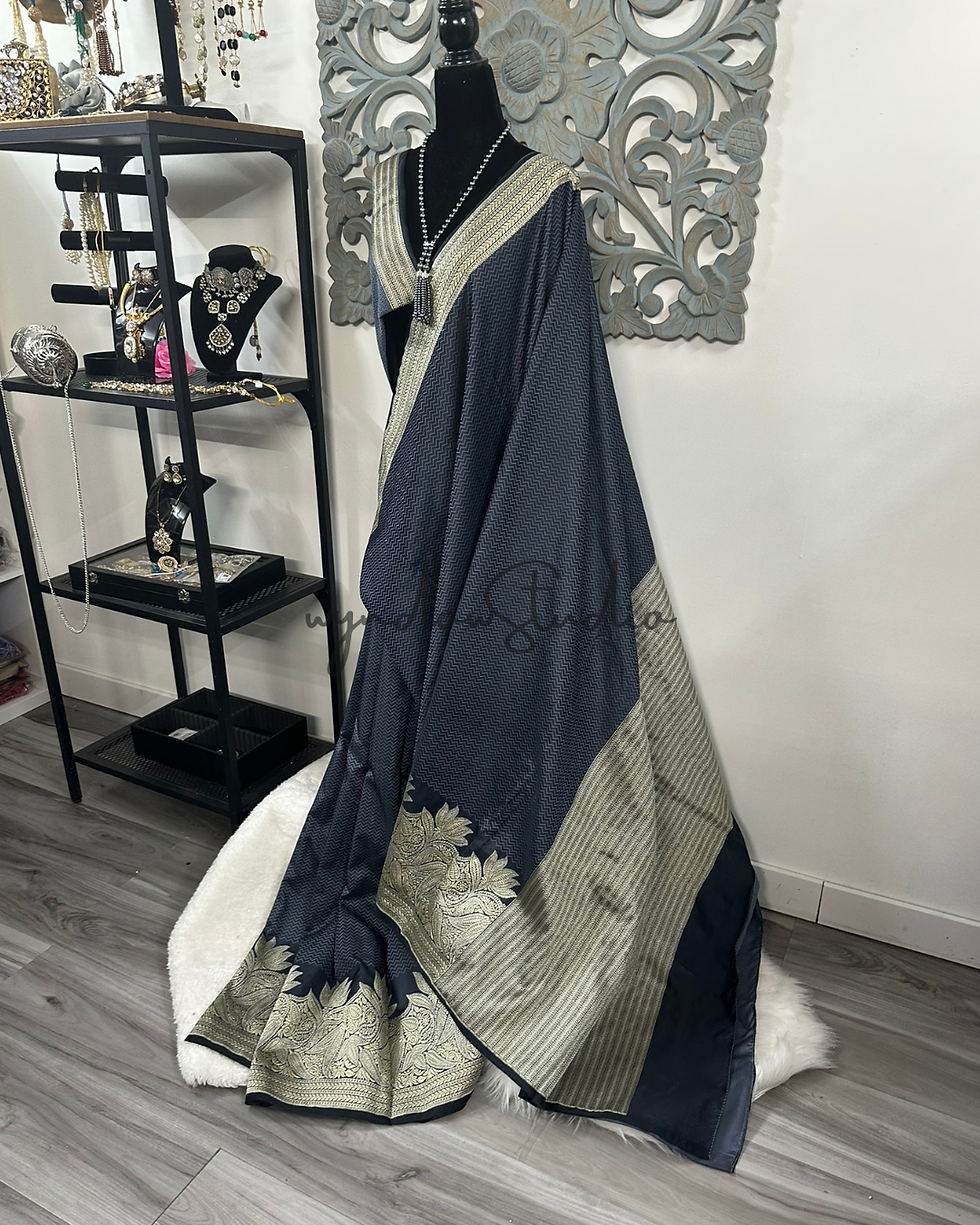 Indigo Blue Chiniya Silk Saree
